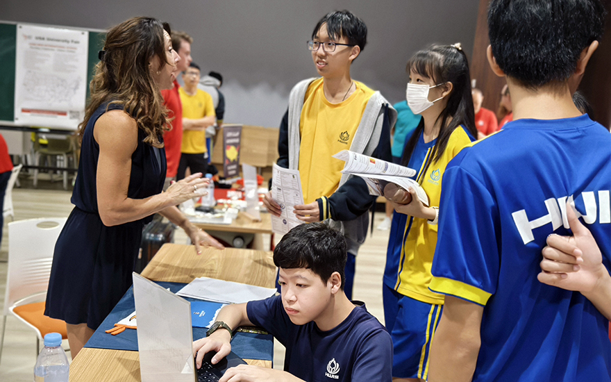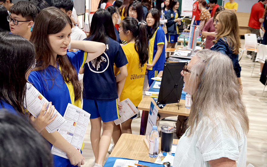 看到學生積極發問,詳細的諮詢所有關於未來的大學申請相關事宜,老師們備感欣慰。入學要求、課外活動標準以及獎學金的申請方式都有專業的大學人員來為學子們詳細解釋。這次展會為學生們提供了一個直接與招生代表直接面對面溝通的機會,激勵他們追求更高目標的未來規劃。