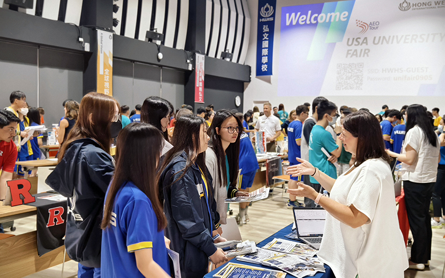 這場在HWIS舉辦的大學博覽會共有來自美國的22所大學,包括匹茲堡州立大學、加州州立大學薩克拉門托分校、邁阿密大學、愛荷華大學和德州大學阿靈頓分校。
